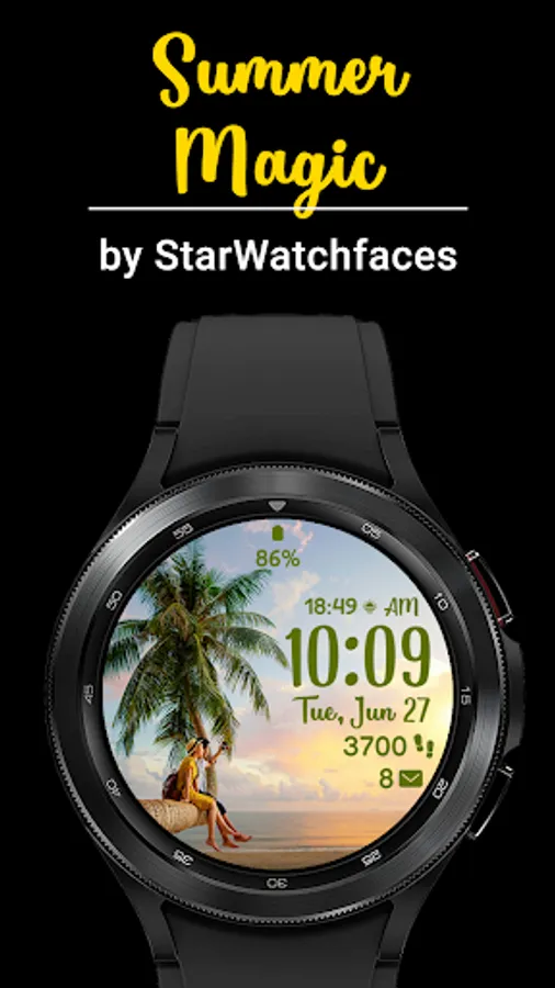 Introducing Summer Magic, a stunning Summer themed watchface, the perfect accessory for the season! This watchface features 10 fabulous summer backgrounds, each more breathtaking than the last. With its vibrant colors and intricate designs, this watchface is sure to turn heads and brighten up any outfit.
