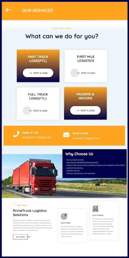 PrimeTruck logistics solutions is leading transportation and logistics service provider which has tech based online truck booking platform (PrimeTruck app) through which our customers can easily book trucks for their shipment in few easy steps.
