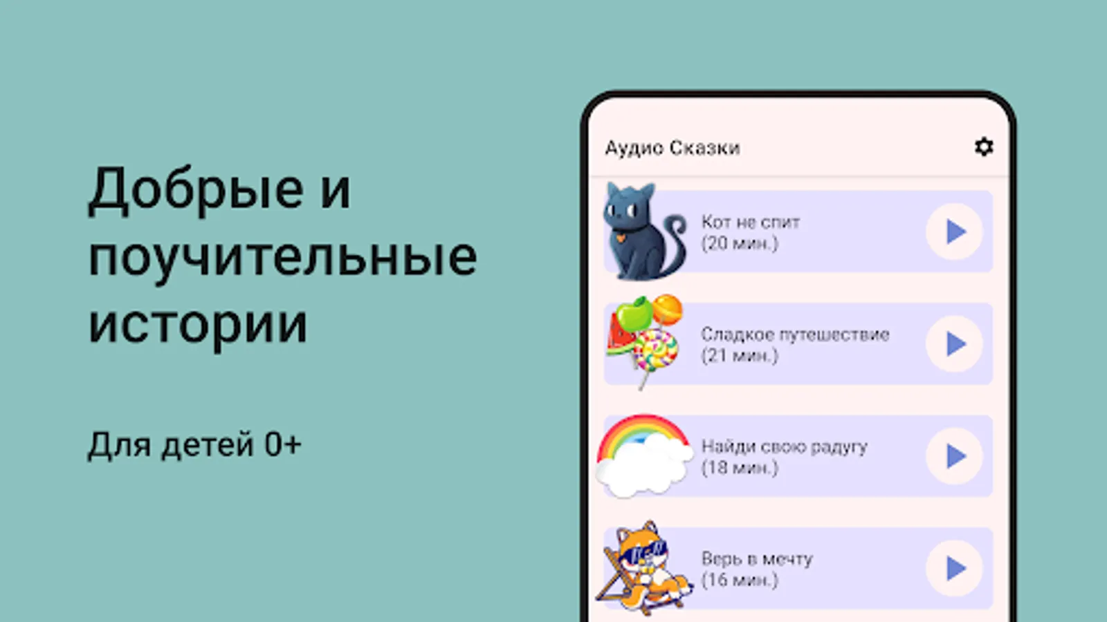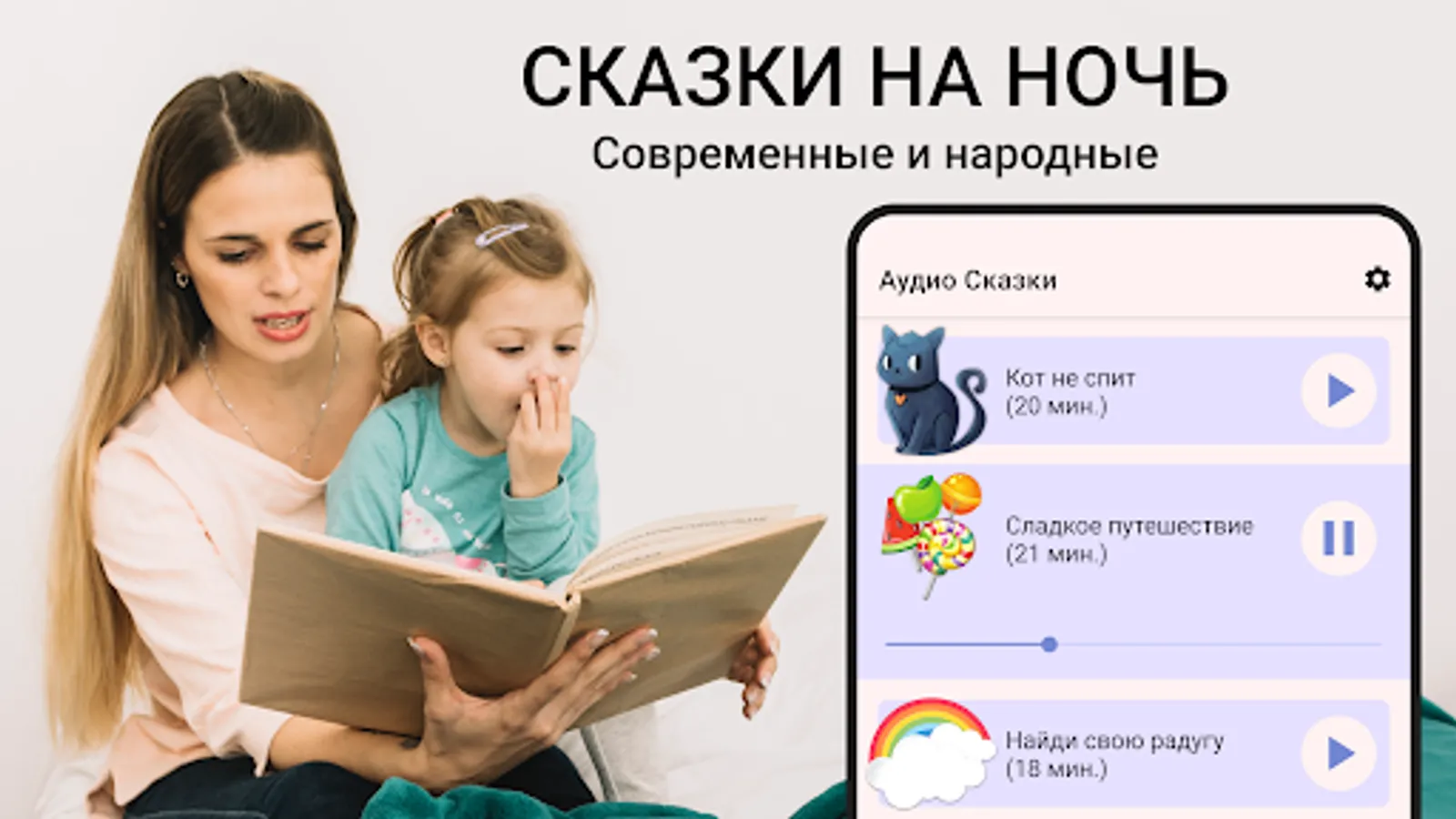 If you are tired of Russian folk tales and you are looking for modern audio books for children, then this app is made for you! In our fairy tales, no one eats anyone, good always triumphs over evil, and the plot is filled with exclusively kindness. Listening to our free bedtime stories, your child will not only take a break from everyday hustle and bustle, but will also absorb all the positive values that every small audiobook is filled with. Listen to audio fairy tales at night and sleep sweetly!