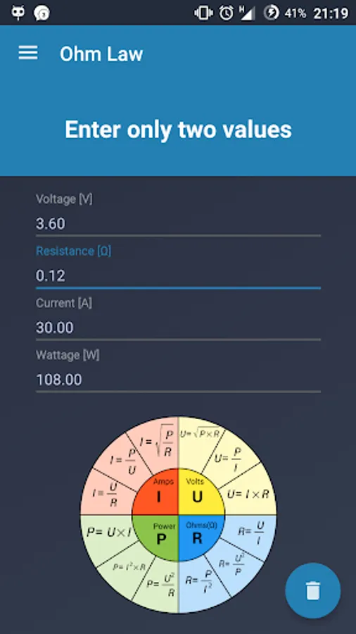 -Fast Ohm Law calculator widget