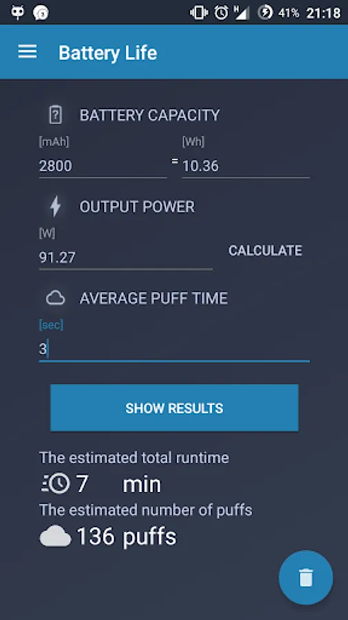 Battery Life: allows you to calculate estimated runtime on your mechanical mods and estimated puffs