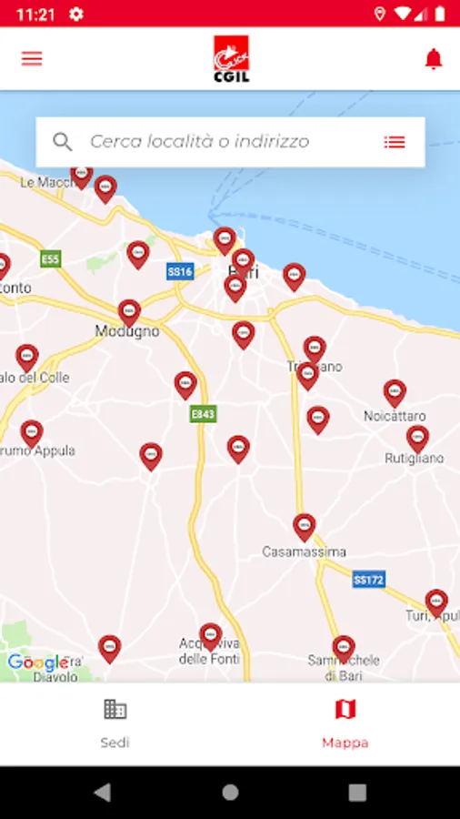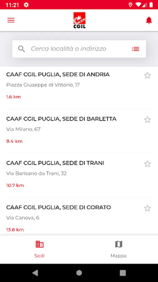 The Geolocation and the relative information of the CGIL offices, for the moment, are active only in the Puglia region.