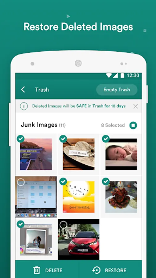 π Deleted but not lost & recovered in a flash, as it safely keeps every deleted photo in Trash for 10 Days.