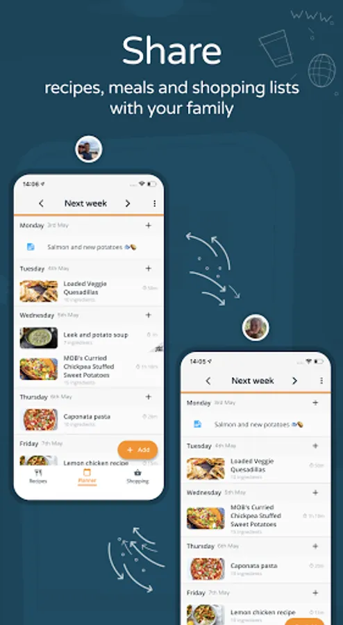 With Stashcook's Family Share feature, you can sync up to 6 accounts and automatically share your recipes, meals and grocery lists. Making it super easy for households to meal plan and shop as a team.