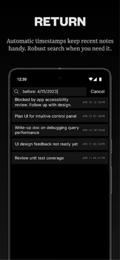 Designed for those messy, in-progress moments where important thoughts and ideas come quick and need to be captured just as quickly. Simply write your note, save it, and get back to work.