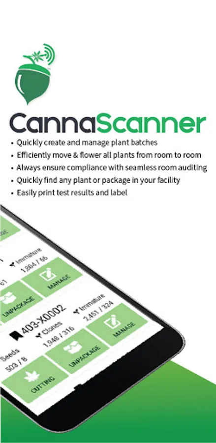 CannaScanner allows licensed cannabis cultivators to efficiently maintain operational compliance.  Utilize barcode and RFID scanner technologies to capture and report plant and package activities to the METRC system in states where METRC is the selected Seed-to-Sale tracking system.