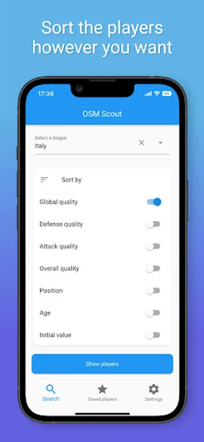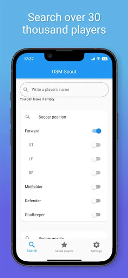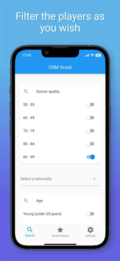 Are you a soccer fan looking to build the ultimate team? Look no further than OSM Scout. Our app makes it easy to find and scout players by a variety of criteria, including name, position, quality, age, nationality, and league. Simply enter your search terms and let OSM Scout do the work for you.