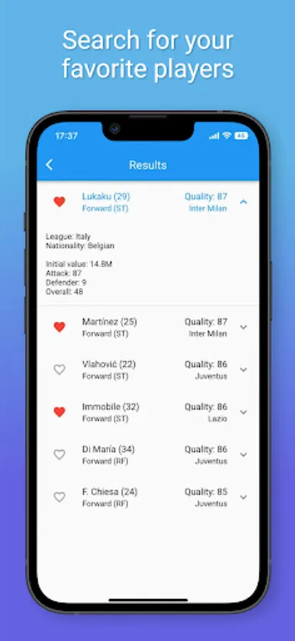Once you've found the players you're interested in, save them to your favorites list and watch them anytime. You can even sort your search results by stats, age, starting value, and more to find the best fit for your team.