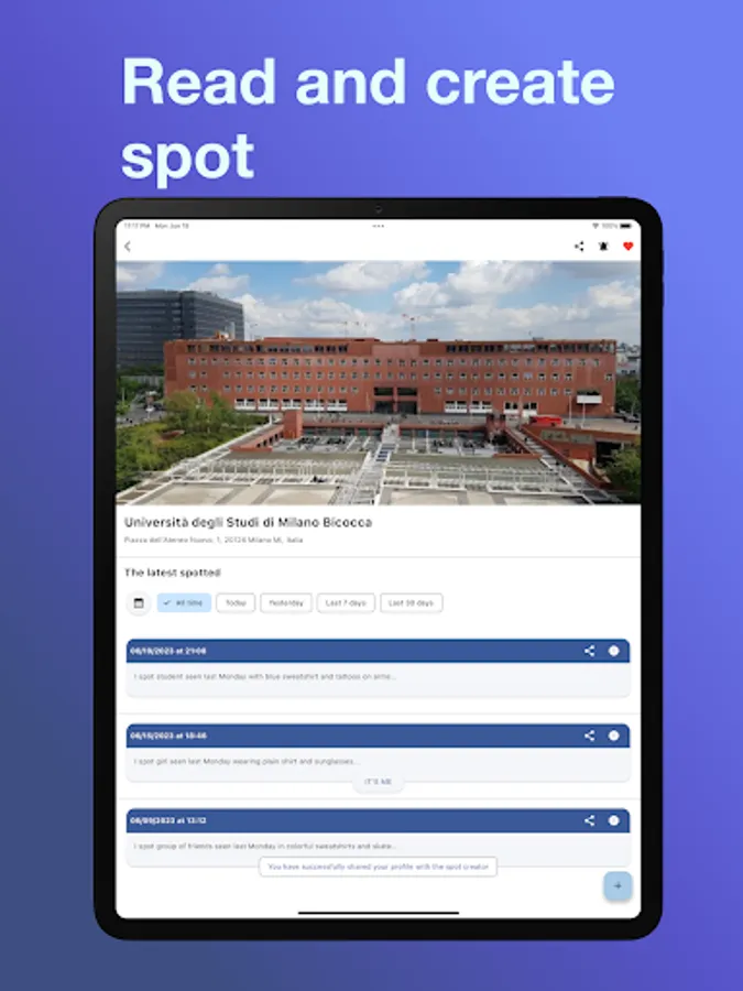 Join an exciting and engaging university adventure with UniSpotted, the ultimate app to explore the university world in a whole new way. Connect with fellow students, share anonymous spots, and embark on unforgettable experiences together. Get ready to dive into the heart of your university community and unlock a world of friendship and intrigue, right at your fingertips.
