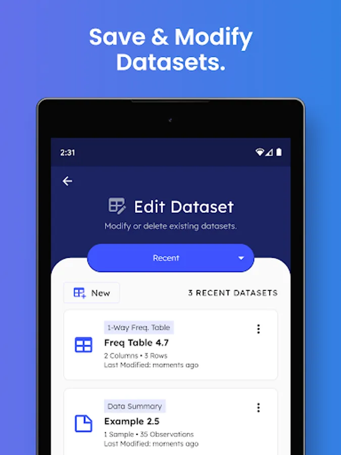 • Enter & Save Datasets