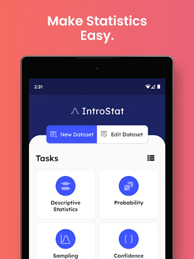 IntroStat is a probability and statistics calculator. It is the perfect learning tool for an introductory statistics course. Use it to perform any of your statistics calculation needs. IntroStat also includes a statistics textbook complete with formulas, exercise problems, examples, and more.