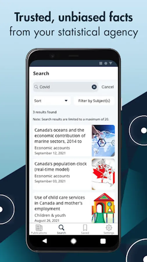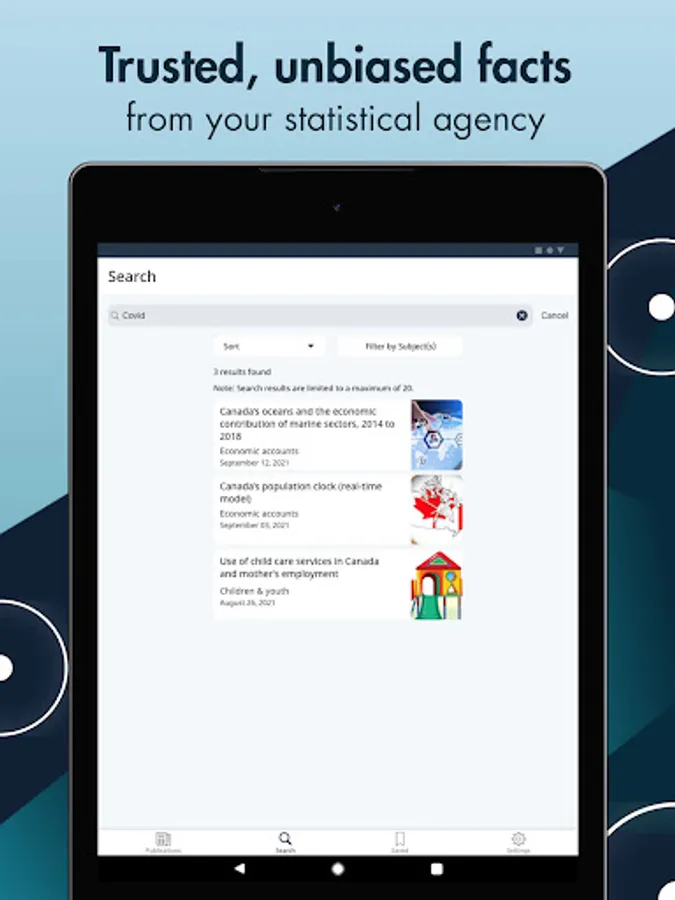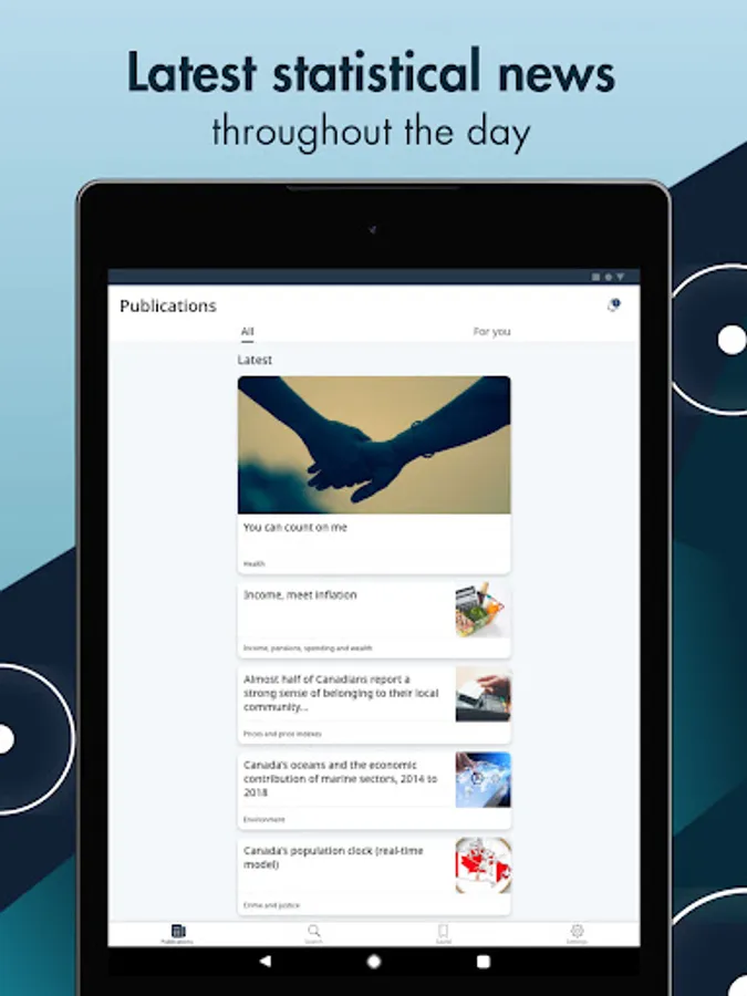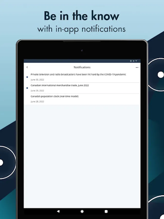 StatsCAN – the agency’s newest mobile application - lets you tap into expert analysis and insight through data, tools and articles to provide you with the latest information on relevant topics including employment, the environment, housing, immigration, health, education, justice, population, transportation, tourism, income, agriculture, and more!