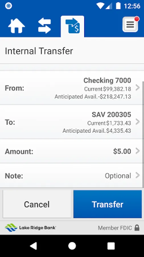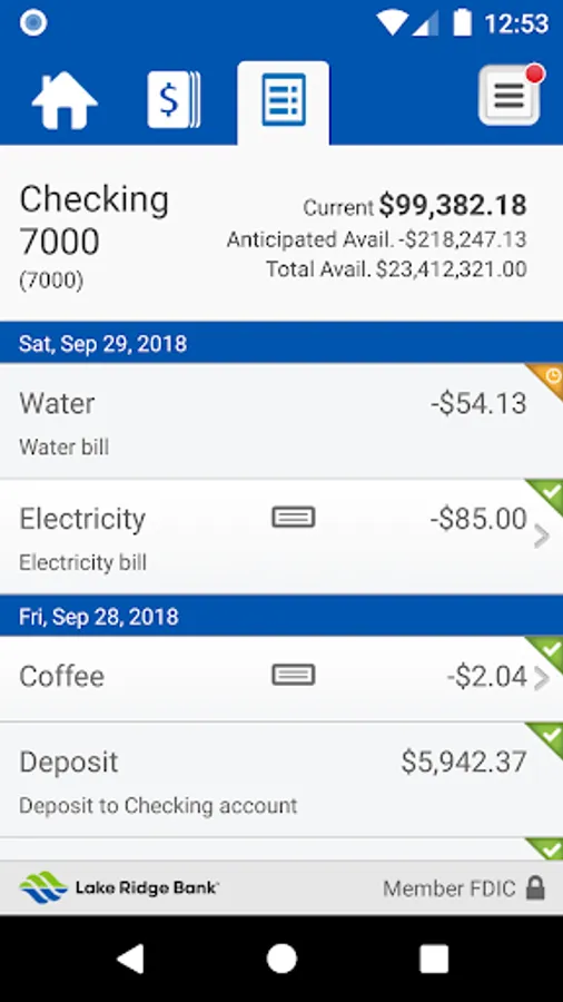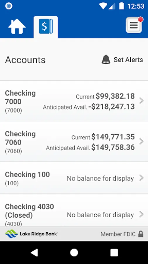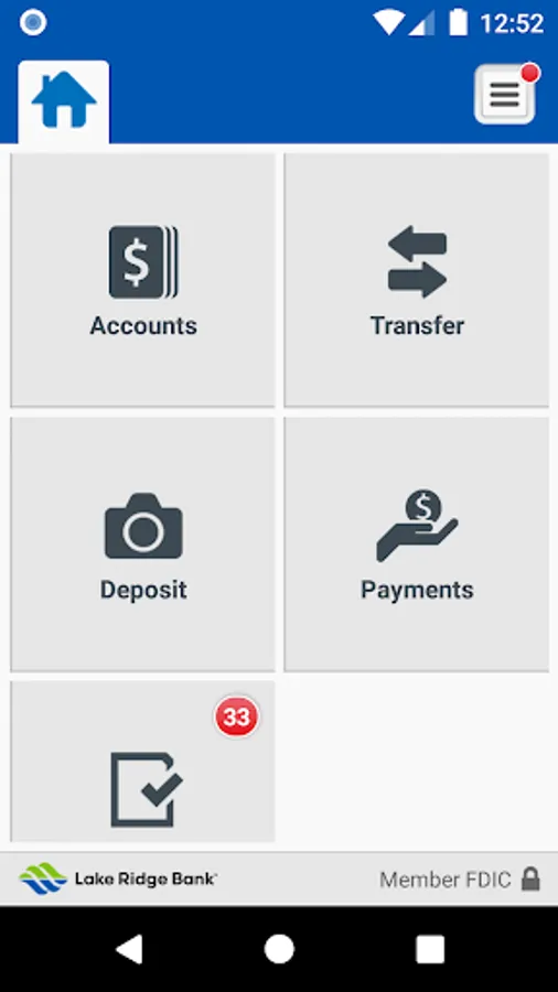 Our “Go Mobile” app gives Lake Ridge Bank business clients access to the following features: