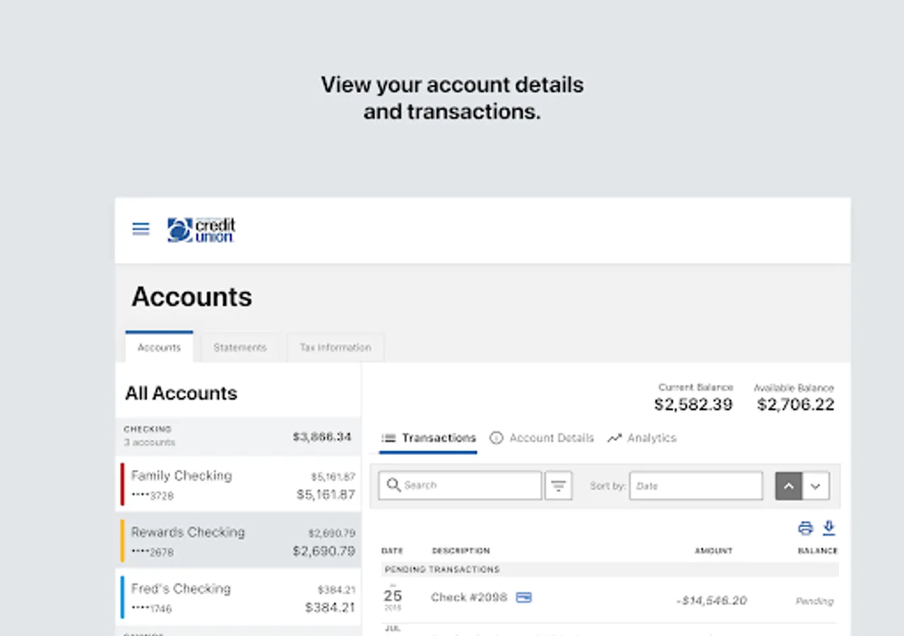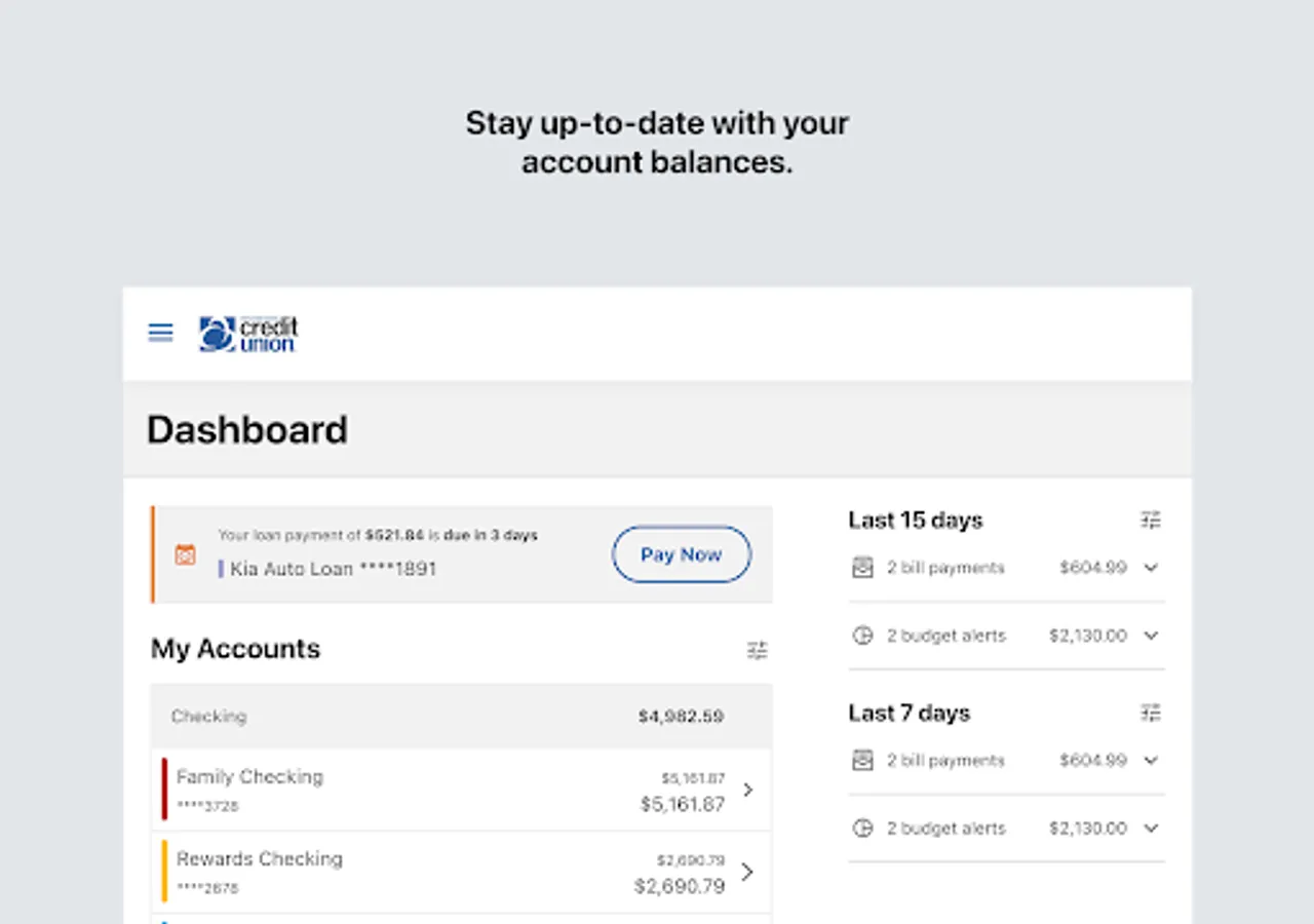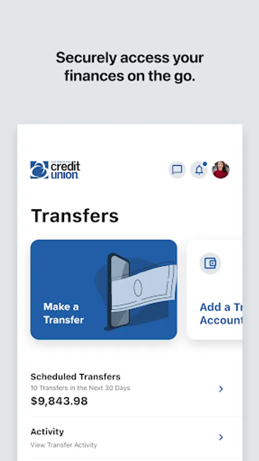 • Easily transfer money between Credit Union accounts and accounts at other financial institutions