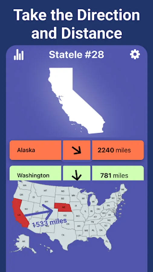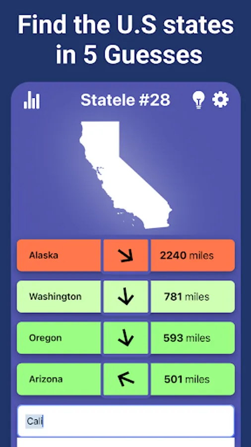 Are you a geography nerd? Statele : Worldle for Countries is a geoguess (geo challenge) word quiz & puzzle globle game! When you make your first country guess in the U.S, the game tells you how close was your guess is in distance and shows the direction in the compass to make your new guess.
