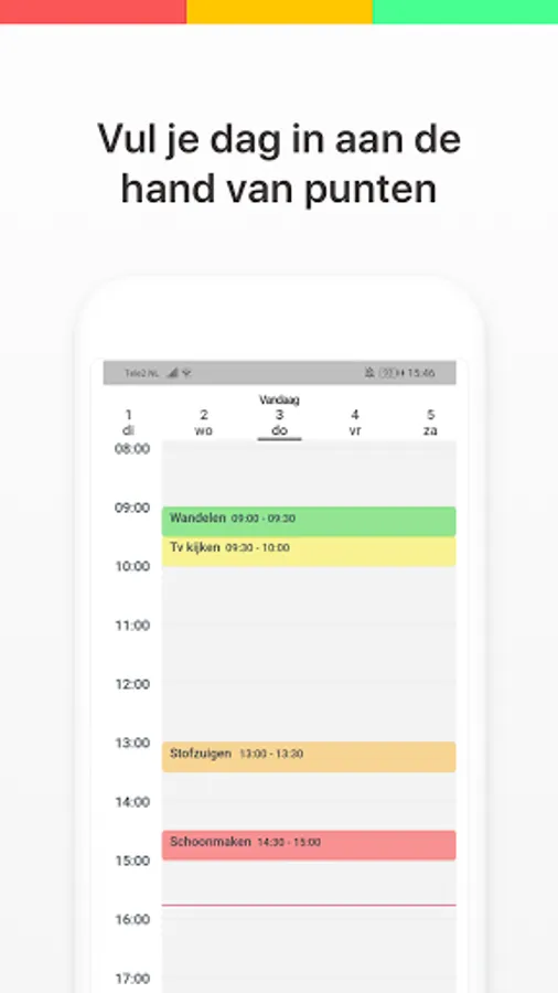 Conceived and developed by primary care occupational therapists. Intended for clients who have gone through the activity scale together with their occupational therapist and now want to make a day/week schedule based on the same points system. The points depend on the duration and your given rating (relaxation, light, medium, heavy) and add up automatically.