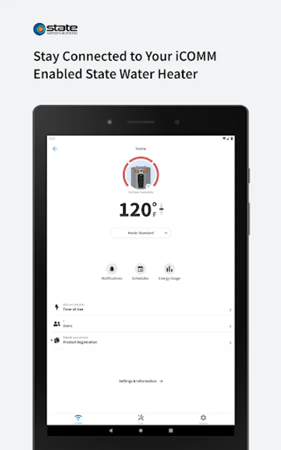With constant remote monitoring and helpful tools designed just for professionals, the State Water Heaters Mobile App features the iCOMM™ connectivity platform, the latest technology for remote water heater management.