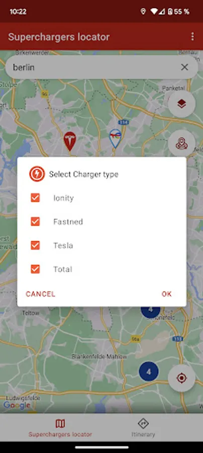 The "Superchargers for Tesla" application allows you to locate the fast charging stations of Tesla network, TotalEnergies, Ionity and Fastned ...