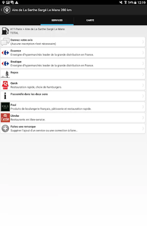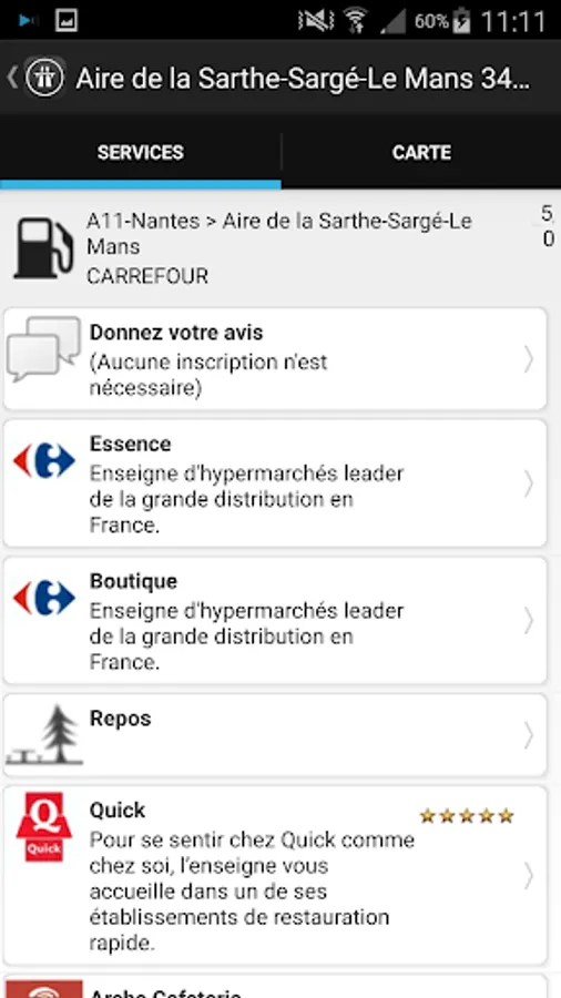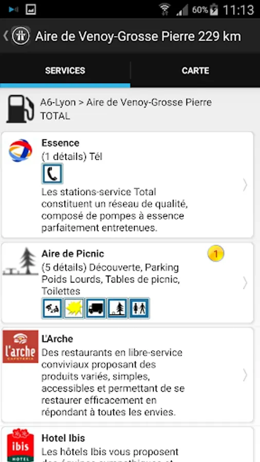 Thanks to your GPS, the app will determine the stop areas ahead.