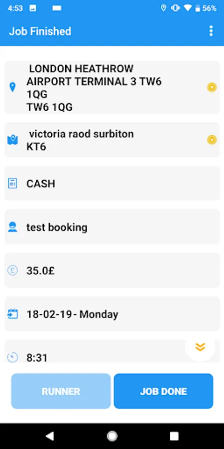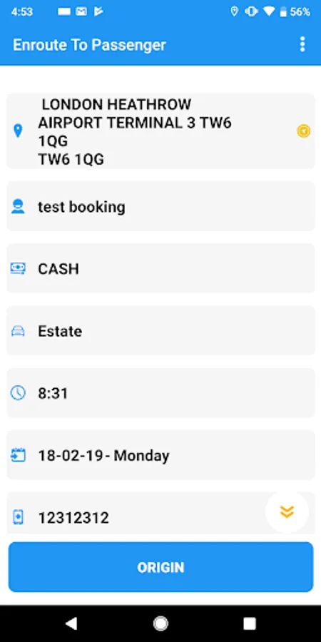 * app any time connected with the advance cab despatch system.