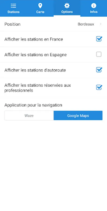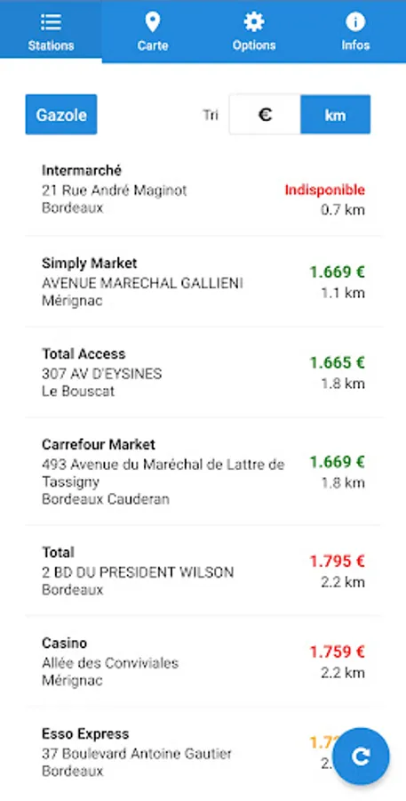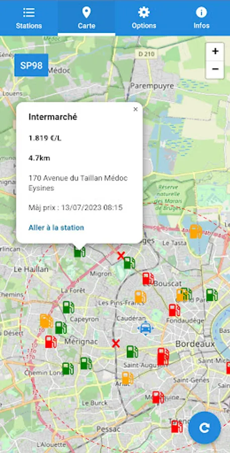 Our application lists the service stations around you, in order to allow you, at a glance, to refuel at the best price, for all types of fuel (Diesel (B7), SP98, SP95, SP95 /E10, E85, LPG).