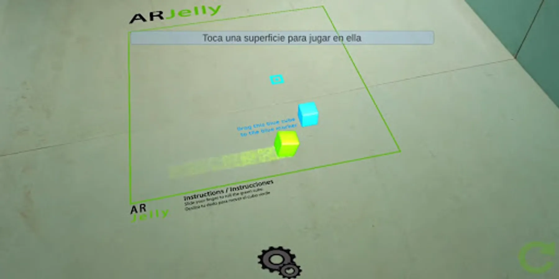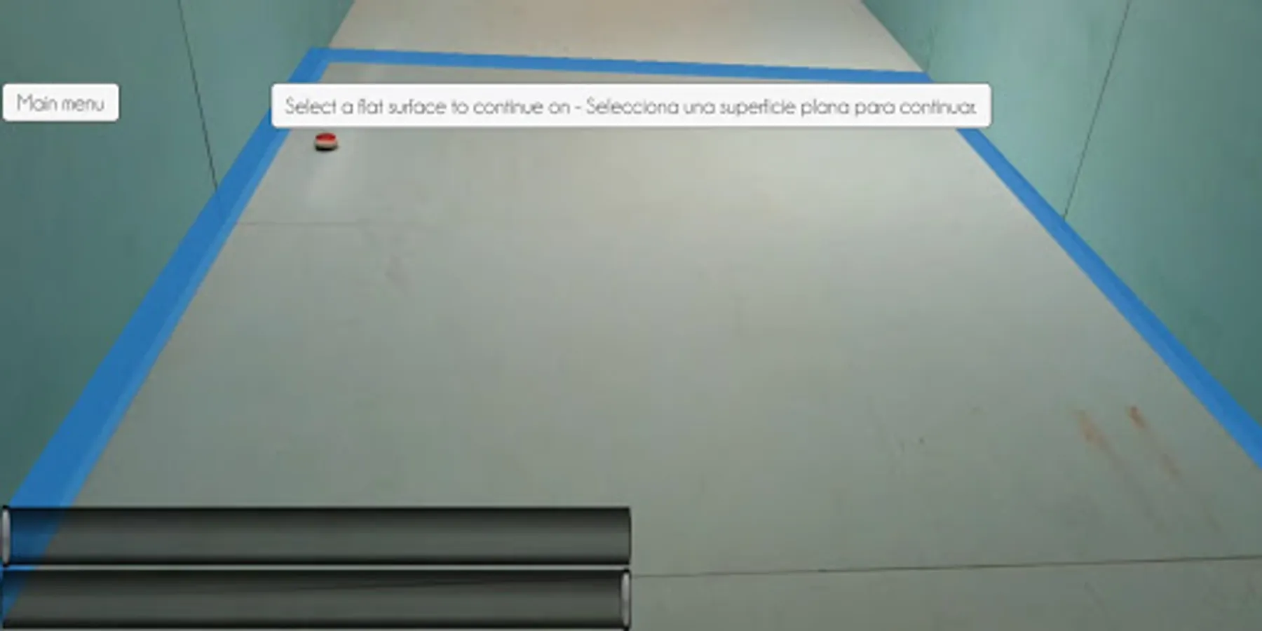 3.- Once you have detected a surface, a blue square will appeared, you can touch it if it is your desired area to display the content.