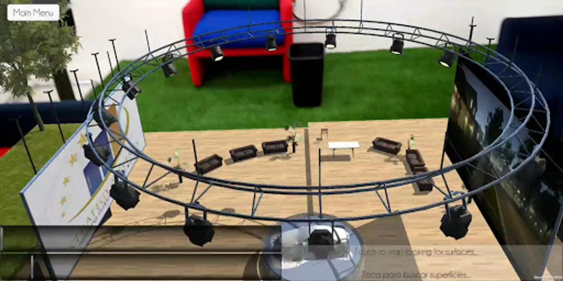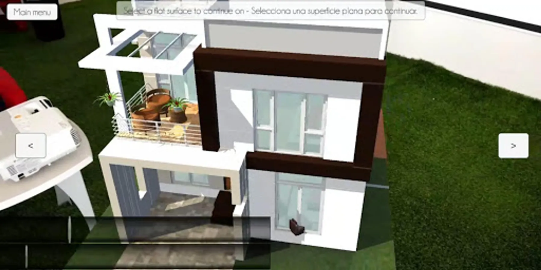 This application aims to show you what we can do with advanced augmented reality, which detects flat surfaces, such as a table or the floor and above them shows a house, a park or a condominium. It also has the ability to orient you through the movement of the device, meaning that if you bring your device to the 3d object (example: home) it seems that you really approach it.