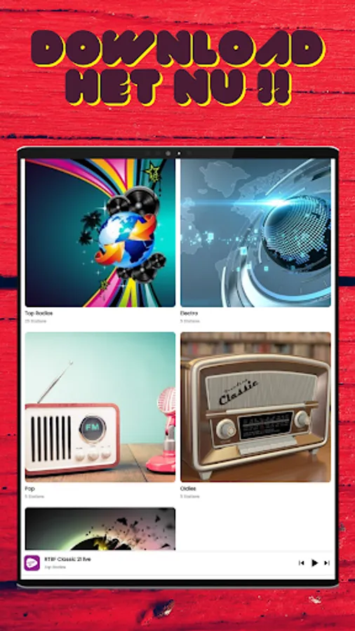 With this radio app you can listen to the best online stations 24/7, wherever and whenever you want. You can choose channels for sports, news, music, comedy and more.