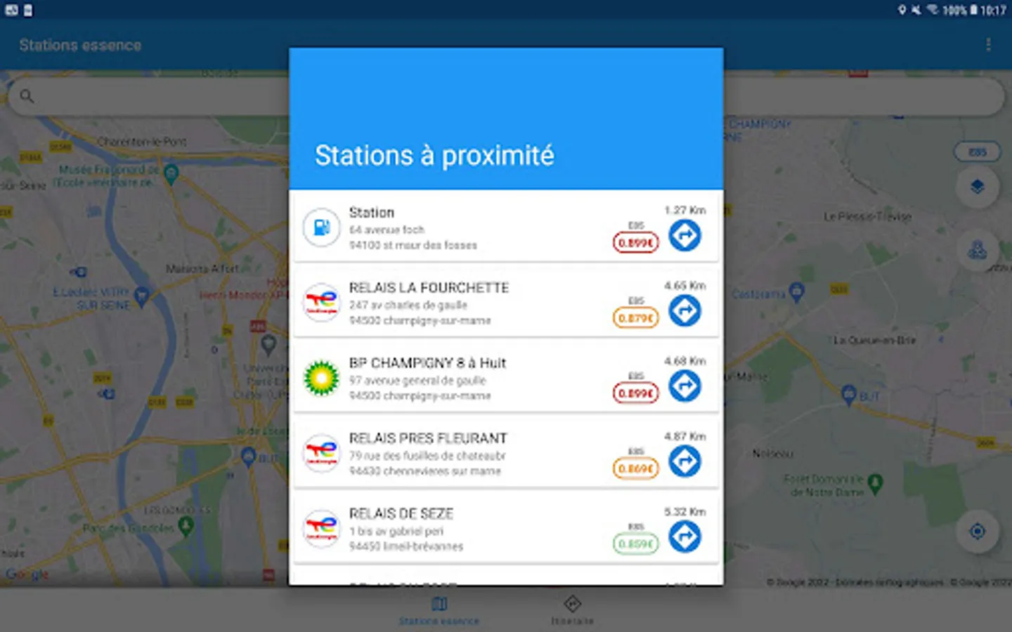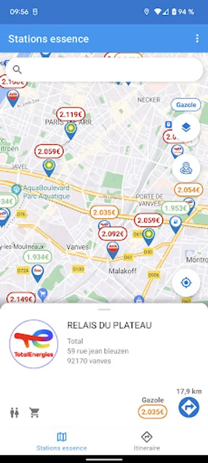 The “Gas Stations” application will allow you to find gas stations distributing Diesel / SP95 / E85 / LPG / E10 / SP98 throughout France at the best price. The details of the stations inform you about the opening hours, the address, the distance which separates you and you can also launch the route to get there via your favorite navigation application.