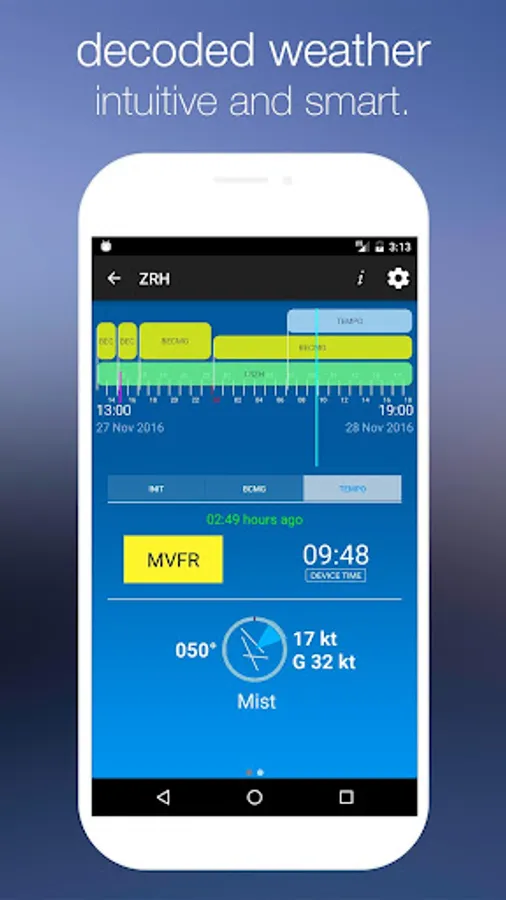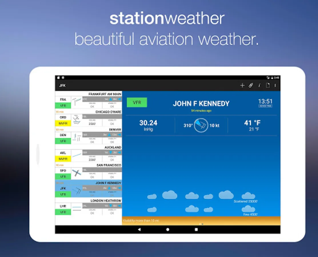 StationWeather helps you analyze METAR and TAF aviation weather reports. Be it VFR or IFR, StationWeather is a great companion for checking weather conditions. Aero Weather reports are decoded on a unique interface that allows you to analyze METAR and TAF publications faster and more efficient than with any other app.