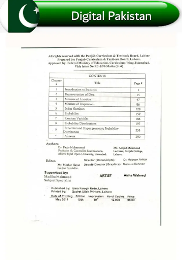 This book is published by Majeed Book Depot Lahore, Fiasalabad and Rawalpindi for the students of first year.