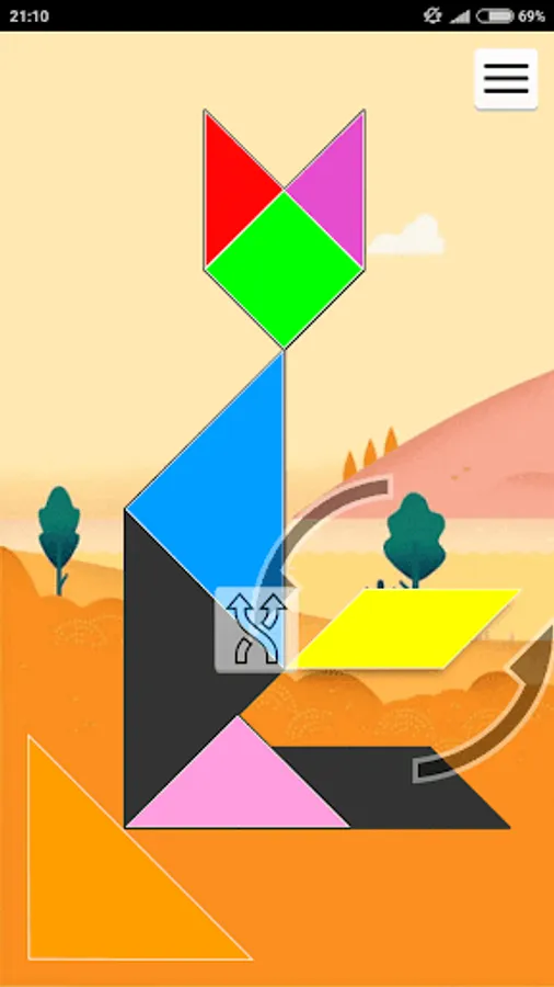 Tangram is the most popular puzzle game in China and all over the world. The game is about the construction of a figure while you are limited by seven pieces of it, which are called tans. Important is that tans cannot overlap each other.