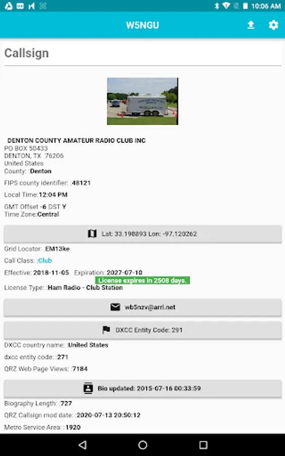 Look up ham radio callsigns. See biographies of the people you are communicating with on the radio. Discover their QSL preferences.