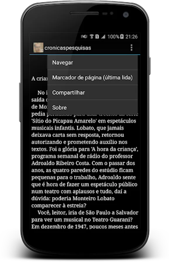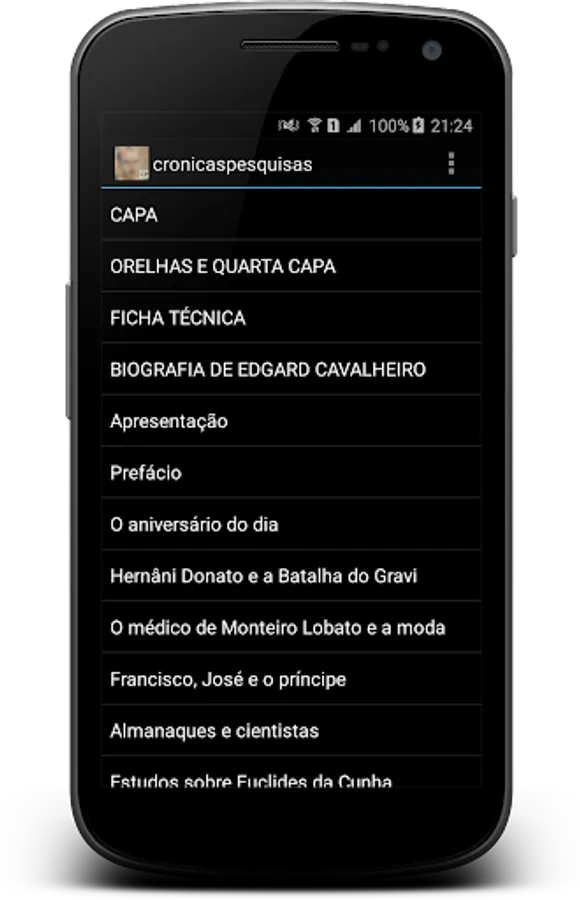 App inspirado no livro D'ONOFRIO, Silvio Tamaso. "Crônicas pesquisas: Edgard Cavalheiro escreveu". Prefácio de Paulo Bomfim. Ilustrações de Pazé. São Paulo: Scortecci, 2014.