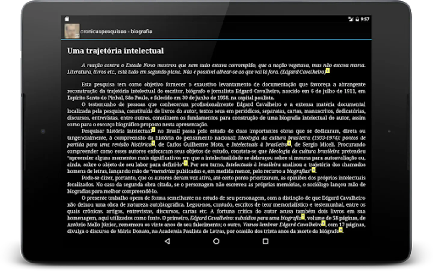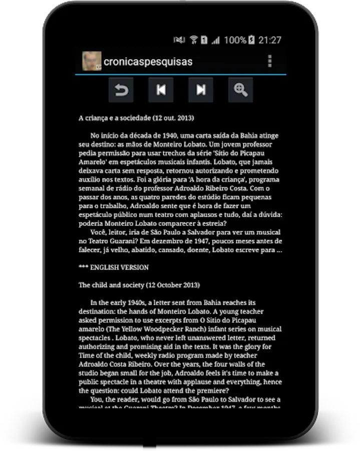 O aplicativo "Crônicas Pesquisas: Edgard Cavalheiro escreveu", App oficial do livro de Silvio Tamaso D'Onofrio, contém a versão integral do texto em inglês, seis crônicas inéditas e a mais completa biografia do amigo e primeiro biógrafo de Monteiro Lobato, além de criador do Troféu Jabuti, Edgard Cavalheiro (1911-1958).