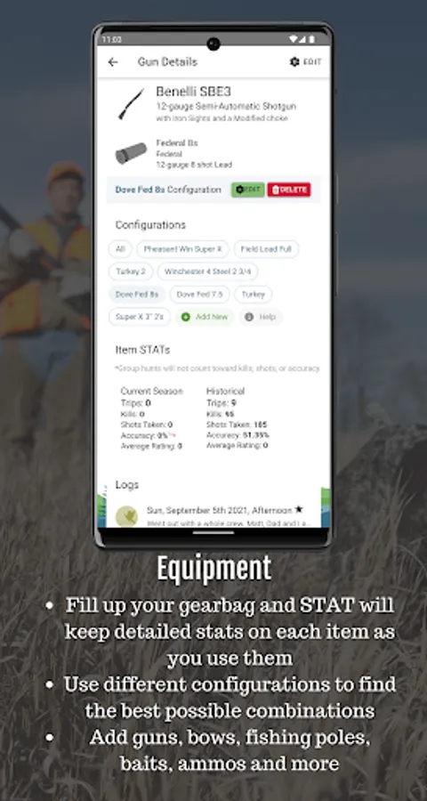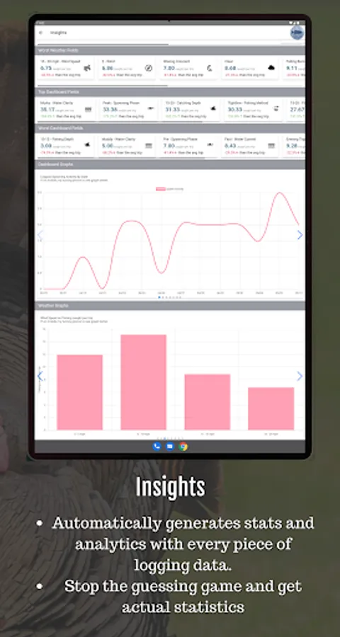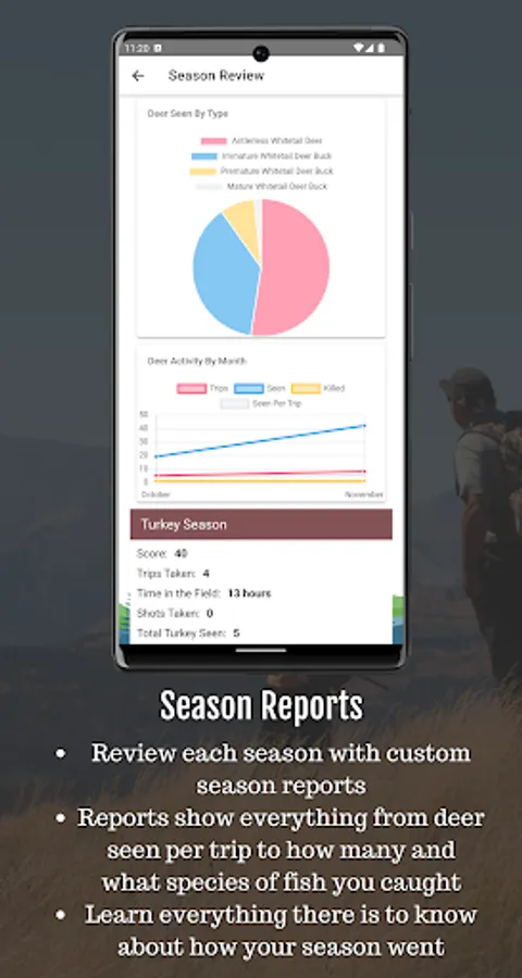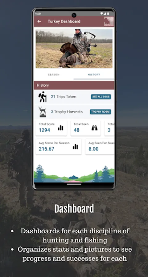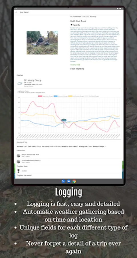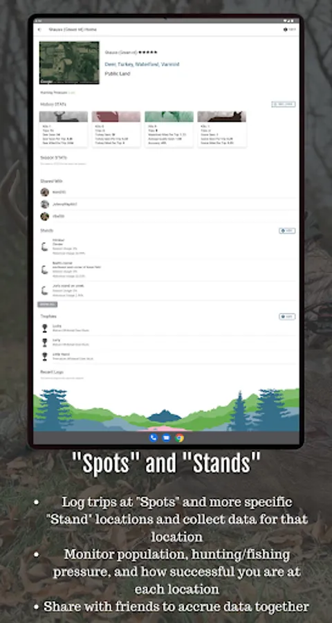 Log hunting and fishing data after each trip. Over 50 data fields and counting for a thorough and complete account of the trip.