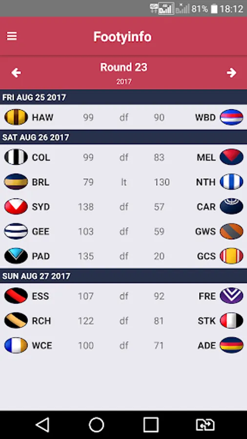 Footyinfo is a live AFL scores app providing coverage of all AFL games (including scores, stats, fixtures, the ladder, news, and Supercoach and Dream Team scores).