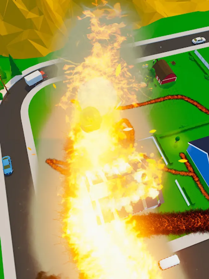 Burn fences, and houses, and explode cars. Can you reach the firestorm level and defeat the boss? Clean the town with fire until there is nothing left.