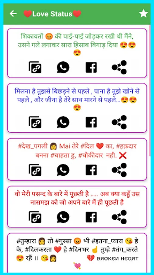Shayari is one of the best thing for express feeling with someone else .This app is one of the sad shayari hindi collection also its totally free and no internet required . Use this amazing unlimited Hindi Love Shayari for read amazing shayari and share to someone special .