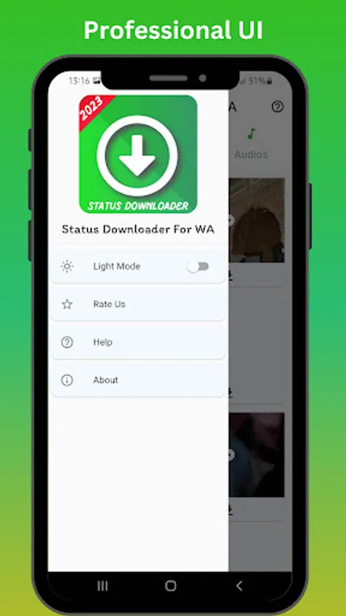=> It Helps the user to Save their Audio status from WhatsApp.