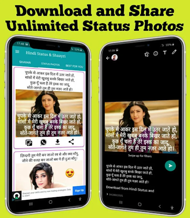 You can use all shayari and status photos in whatsapp, facebook or social media. Instal thia app now and get more features.