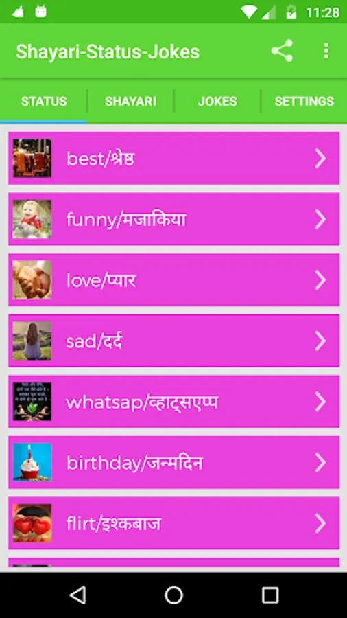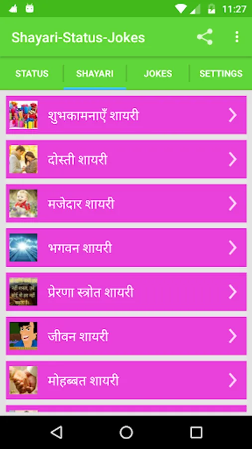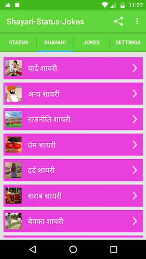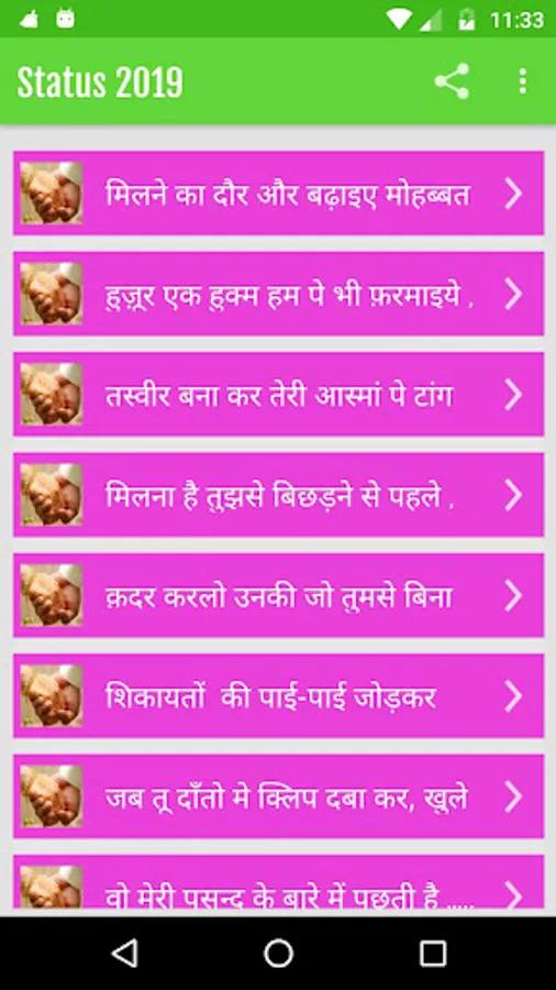 This app contains hindi shayari ,hindi status message and hindi jokes .All is latest for 2023