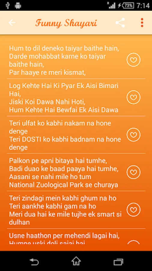 We provide a simple & elegant way to share your favourite Funny Shayari with your family and friends. We sincerely hope that our Funny Shayari app will be helpful to get enjoy and fun.
