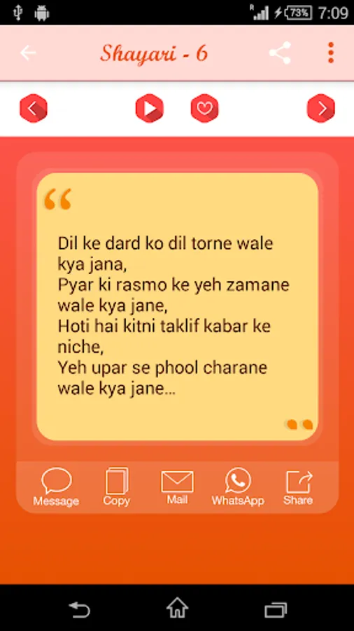 This is a great app in which have every type of shayari only in single package. So Use this app and enjoy your day.