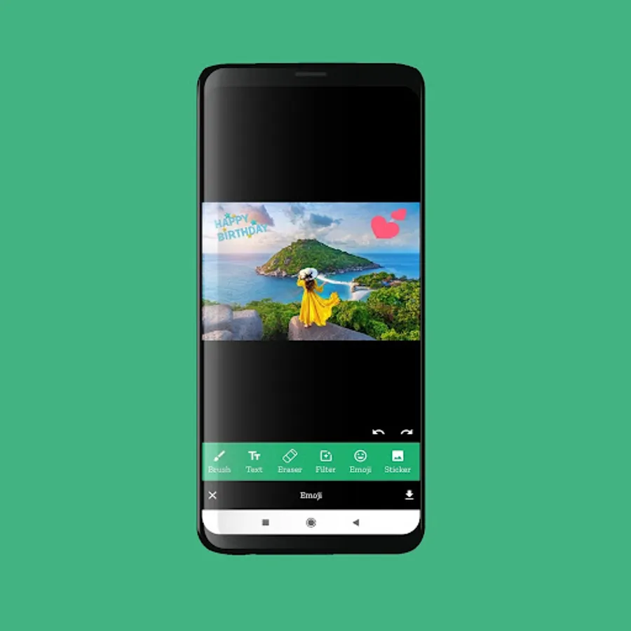 if you can add emoji,and birthday,Happy New Year,Festival sticker,you can put text on images and give various effect and many more other functionality.