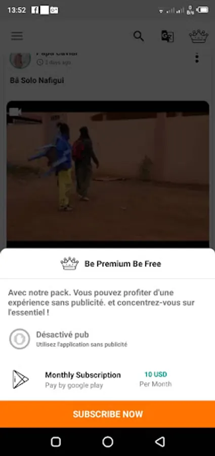 Subscription to delete Ads