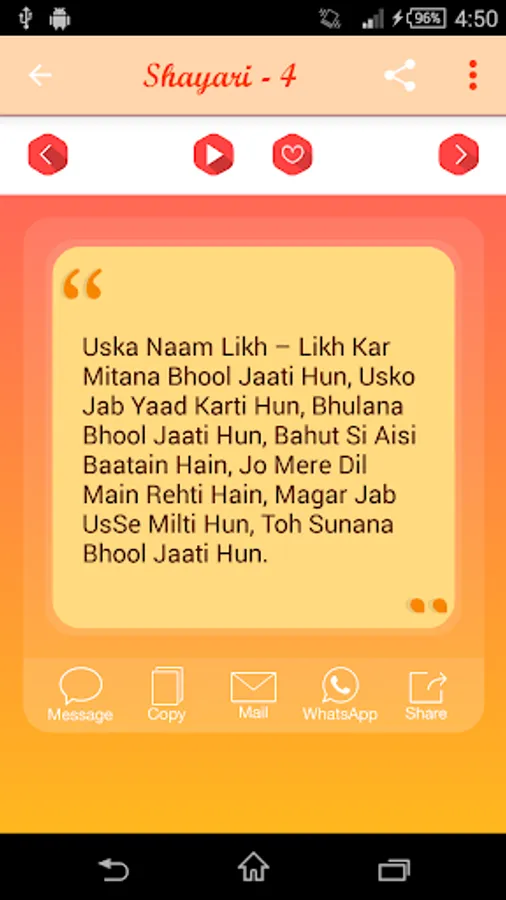 This is a great app in which have every type of shayari only in single package. So Use this app and enjoy your day.