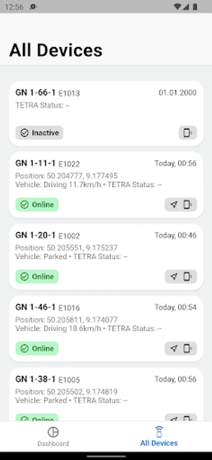 The app enables you to call up the status of your emergency vehicles equipped with the NBX quickly and easily from anywhere. Error messages and warnings are clearly displayed directly on the start page and for a more detailed insight, each individual data point recorded by the NBX can be viewed in real time via the respective vehicle page.