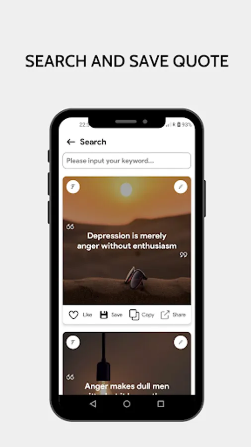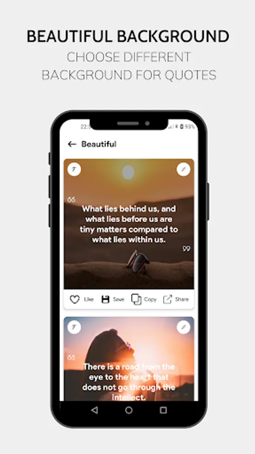 The app offers an array of popular and trending quotes from different categories like love, friendship, motivation, and more.