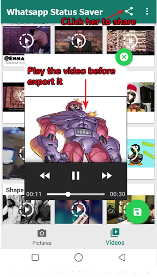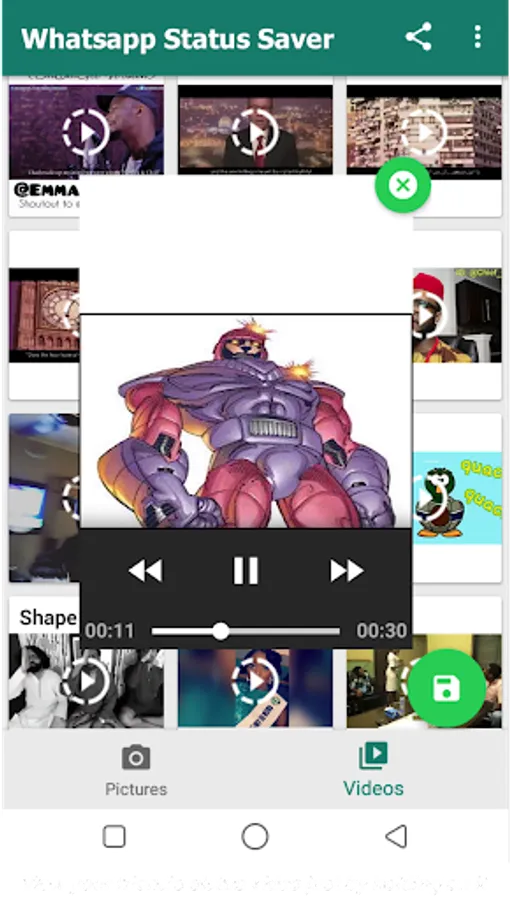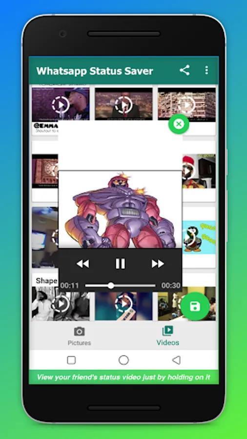 6- Finally, you do not need to go to the download folder for images and videos in your phone and you find it in HD quality, take the opportunity to download the statuses and whatsapp stories.